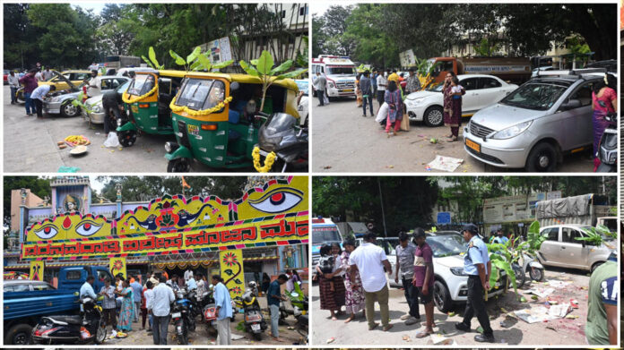 ತಮ ತಮ ವಾಹನಗಳನ್ನು ಶುಚಿಗೊಳಿಸಿ, ಶೃಂಗಾರ ಮಾಡಿ ಕೆಲವರು ಮನೆಗಳ ಬಳಿಯೇ ಪೂಜೆ ಮಾಡಿದರೆ ಇನ್ನೂ ಕೆಲವರು ಪ್ರಮುಖ ದೇವಾಲಯಗಳ ಬಳಿ ವಾಹನಗಳಿಗೆ ಕುಂಬಳಕಾಯಿ ಹೋಡೆಯುವ ಮೂಲಕ ಪೂಜೆ ಮಾಡಲಾಯಿತು. ನಗರದ ಸರ್ಕಲ್‌ ಮಾರಮ, ಗಾಳಿ ಆಂಜನೇಯ ದೇವಾಲಯ, ವಿಜಯನಗರದ ಮಾರುತಿ ಮಂದಿರ, ಬನಶಂಕರಿ ದೇವಾಲಯ, ರಾಜಾಜಿನಗರದ ರಾಮ ಮಂದಿರ, ಗವಿ ಗಂಗಾಧರೇಶ್ವರ, ಕಾಡುಮಲ್ಲೇಶ್ವರ ಸೇರಿದಂತೆ ವಿವಿಧ ದೇವಾಲಯಗಳಲ್ಲಿ ವಿಶೇಷ ಹೂವಿನ ಅಲಂಕಾರ ಮಾಡಲಾಗಿದ್ದು, ಮುಂಜಾನೆಯಿಂದಲೇ ಪೂಜಾ ಕಾರ್ಯಗಳು ನೆರವೇರಿದವು.