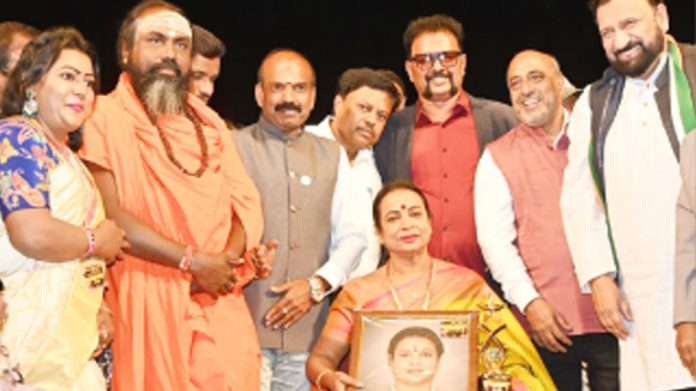 ಬೆಂಗಳೂರು, ಫೆ.2- ಚಿತ್ರನಟಿ ಉಮಾಶ್ರೀ ಸೇರಿದಂತೆ 50 ರಂಗಭೂಮಿ ಕಲಾವಿದರಿಗೆ ಕಲಾ ಸಾಮ್ರಾಟ್ ಸ್ಟಾರ್ ಪ್ರಶಸ್ತಿ ಪ್ರದಾನ ಮಾಡಲಾಯಿತು.ರವೀಂದ್ರ ಕಲಾಕ್ಷೇತ್ರದಲ್ಲಿ ಕನ್ನಡ ಸಂಸ್ಕೃತಿ ಇಲಾಖೆ ಸಹಯೋಗದಲ್ಲಿ ಓಂ ಶ್ರೀ ಸಾಯಿ ರಾಂ ಸಾಂಸ್ಕೃತಿಕ ವೈಭವ ಕಾರ್ಯಕ್ರಮದಲ್ಲಿ ಖ್ಯಾತ ಹಾಸ್ಯ ನಟಿ ಉಮಾಶ್ರೀ ಸೇರಿದಂತೆ 50 ರಂಗಭೂಮಿ ಕಲಾವಿದರಿಗೆ ಪ್ರಶಸ್ತಿ ನೀಡಿ ಗೌರವಿಸಲಾಯಿತು.