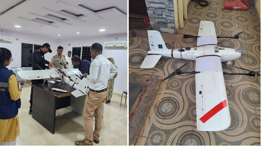 ಎಸ್ .ಪಿ ಸೇರಿದಂತೆ ಪೊಲೀಸ್ ಅಧಿಕಾರಿಗಳು, ಬಾಂಬ್ ನಿಷ್ಕ್ರಿಯ ದಳ,ಸೋಕೊ ಟೀಂ ಸೇರಿದಂತೆ ಎಲ್ಲ ತಜ್ಞರ ತಂಡ ಆಗಮಿಸಿ ಹಲವು ಗಂಟೆಗಳ ಕಾಲ ಡ್ರೋನ್ ಮಾದರಿಯ ವಸ್ತುವನ್ನ ಪರಿಶೀಲನೆ ನಡೆಸಿದ್ದು, ಥರ್ಮಕೋಲ್ ಬಳಸಿ ವಿಮಾನ ಮಾದರಿಯಲ್ಲಿ ತಯಾರಿಸಲಾಗಿದೆ, ಬ್ಯಾಟರಿ ಸೇರಿದಂತೆ ಎಲೆಕ್ಟ್ರಿಕ್ ವೈರ್ಗಳು ಅಳವಡಿಸಲಾಗಿದ್ದವು ಎನ್ನಲಾಗಿದೆ.