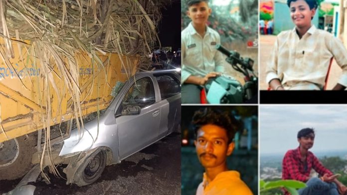ಜಮಖಂಡಿ: ತಾಲ್ಲೂಕಿನ ಸಿದ್ದಾಪೂರ ಗ್ರಾಮದ ಪ್ರಭುಲಿಂಗೇಶ್ವರ ಸಕ್ಕರೆ ಕಾರ್ಖಾನೆ ಹತ್ತಿರ ಹೋಗುತ್ತಿರುವ ಕಬ್ಬಿನ ಟ್ರ್ಯಾಕ್ಟರ್ ಗೆ ಹಿಂಬದಿಯಲ್ಲಿ ಕಾರು ಡಿಕ್ಕಿ ಹೊಡೆದ ಪರಿಣಾಮ ಕಾರಿನಲ್ಲಿದ್ದ ನಾಲ್ಕು ಜನ ಯುವಕರು ತಡರಾತ್ರಿ ಸಾವನಪ್ಪಿದ ಧಾರುಣ ಘಟನೆ ಸಂಭವಿಸಿದೆ.