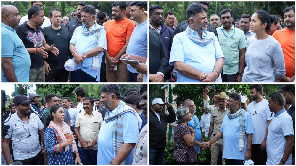 ಇಂದು ಬೆಳಗ್ಗೆಯೇ ಲಾಲ್ಬಾಗ್ ಉದ್ಯಾನವನಕ್ಕೆ ಭೇಟಿ ನೀಡಿದ್ದ ಡಿ.ಕೆ.ಶಿವಕುಮಾರ್, ಅಲ್ಲಿನ ಕೆರೆದಂಡನೆಯಲ್ಲಿ ವಾಯುವಿಹಾರ ನಡಿಗೆಯಲ್ಲಿ ಪಾಲ್ಗೊಂಡಿದ್ದರು. ಡಿ.ಕೆ.ಶಿವಕುಮಾರ್ ಅವರ ಜೊತೆ ಉದ್ಯಾನವನ ನಡಿಗೆದಾರರು ಜೊತೆಯಾದರು. ಈ ಸಂದರ್ಭದಲ್ಲಿ ಹಲವಾರು ಮಂದಿಯ ಜೊತೆ ಉಪಮುಖ್ಯಮಂತ್ರಿ ಚರ್ಚೆ ನಡೆಸಿದ್ದಲ್ಲದೇ ಸ್ಥಳೀಯ ಸಮಸ್ಯೆಗಳ ಬಗ್ಗೆ ಮಾಹಿತಿ ಪಡೆದುಕೊಂಡರು.