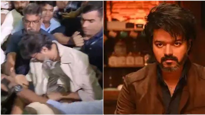 ಪೊಲೀಸರು ಅವರನ್ನು ನಿಯಂತ್ರಿಸಲು ಸಾಧ್ಯವಾಗಲಿಲ್ಲ, ಈ ವೇಳೆ ವಿಜಯ್ ಜಾರಿ ಬಿದ್ದರು. ಇದರ ವಿಡಿಯೋ ಈಗ ಸೋಶಿಯಲ್ ಮೀಡಿಯಾದಲ್ಲಿ ಭಾರಿ ವೈರಲ್ ಆಗಿದೆ.ಭಾರೀ ಭದ್ರತೆಯ ನಡುವೆ ನಾಯಕ ವಿಜಯ್ ವಿಮಾನ ನಿಲ್ದಾಣದಿಂದ ಹೊರಬರುತ್ತಿದ್ದಾಗ, ಅಭಿಮಾನಿಗಳು ಇದ್ದಕ್ಕಿದ್ದಂತೆ ಅವರ ಕಡೆಗೆ ಧಾವಿಸಿದರು. ವಿಜಯ್ ತಮ್ಮ ಕಾರಿನ ಕಡೆಗೆ ಹೋಗುತ್ತಿದ್ದಾಗ, ಅಭಿಮಾನಿಗಳು ಅವರನ್ನು ಮುಂದಕ್ಕೆ ತಳ್ಳಿದಾಗ ಅವರು ಜಾರಿ ಬಿದ್ದರು.