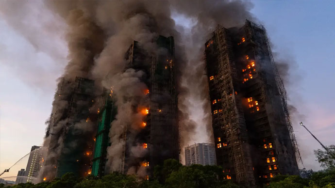 ಹಾಂಗ್ ಕಾಂಗ್ನ ಮುಖ್ಯ ಭೂಭಾಗದ ಗಡಿಯ ಬಳಿಯಿರುವ ಉತ್ತರ ಉಪನಗರವಾದ ತೈ ಪೋ ಜಿಲ್ಲೆಯಲ್ಲಿ ಸಾವಿರಾರು ಜನರು ವಾಸಿಸುವ ಕಟ್ಟಡಗಳ ದಟ್ಟವಾದ ಸಮೂಹವಾದ ವಾಂಗ್ ಫುಕ್ ಕೋರ್ಟ್ ಸಂಕೀರ್ಣದ ಕೆಲವು ಕಿಟಕಿಗಳಿಂದ ದಟ್ಟವಾದ ಹೊಗೆ ಸುರಿಯುತ್ತಿದ್ದಂತೆ, ಬ್ಯಾಟರಿ ದೀಪಗಳನ್ನು ಹಿಡಿದ ರಕ್ಷಣಾ ಸಿಬ್ಬಂದಿ ಸುಟ್ಟುಹೋದ ಗೋಪುರಗಳಲ್ಲಿ ಕಾರ್ಯಚರಣೆ ನಡೆಸಿದರು.