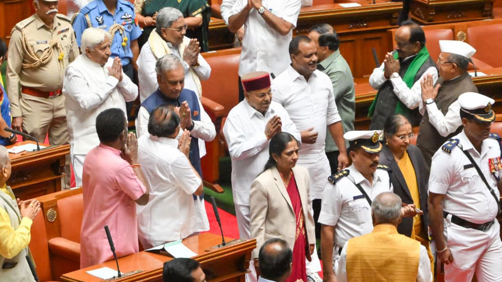 ಈ ಹಂತದಲ್ಲಿ ವಿರೋಧಪಕ್ಷದ ನಾಯಕ ಆರ್.ಅಶೋಕ್ ಅವರು ರಾಜ್ಯಪಾಲರು ನಿರ್ಗಮಿಸುವ ವೇಳೆ ಸದನದಲ್ಲಿ ಅಗೌರವ ತೋರಿದ್ದವರ ಮೇಲೆ ಕ್ರಮ ಕೈಗೊಳ್ಳುವಂತೆ ಪತ್ರ ಕೊಟ್ಟಿದ್ದೇವೆ. ನೀವು ಸಂತಾಪ ಸೂಚನೆ ಮಂಡಿಸುವುದಾಗಿ ಹೇಳಿದ್ದೀರಿ. ಆದರೆ ಕಾನೂನು ಸಚಿವರು ಬೇರೊಂದು ವಿಷಯ ಪ್ರಸ್ತಾಪಿಸಲು ಮುಂದಾಗುತ್ತಿದ್ದಾರೆ. ಇದು ಹೇಗೆ ಎಂದು ಪ್ರಶ್ನಿಸಿದರು. ಈ ಹಂತದಲ್ಲಿ ಸಿಎಂ ಸಿದ್ದರಾಮಯ್ಯ ಸದನದಲ್ಲಿ ನಾವು ಭಾಗವಹಿಸುತ್ತೇವೆ ಎಂದು ಹೇಳಿದರು. ಆಗ ಸಭಾಧ್ಯಕ್ಷರು ಕಾನೂನು ಸಚಿವರನ್ನು ಉದ್ದೇಶಿಸಿ ಅಂತಹ ಮಹತ್ವ ಏನಿದೆ? ಎಂದು ಪ್ರಶ್ನಿಸಿದರು.