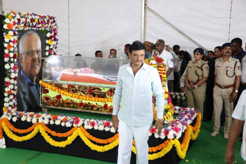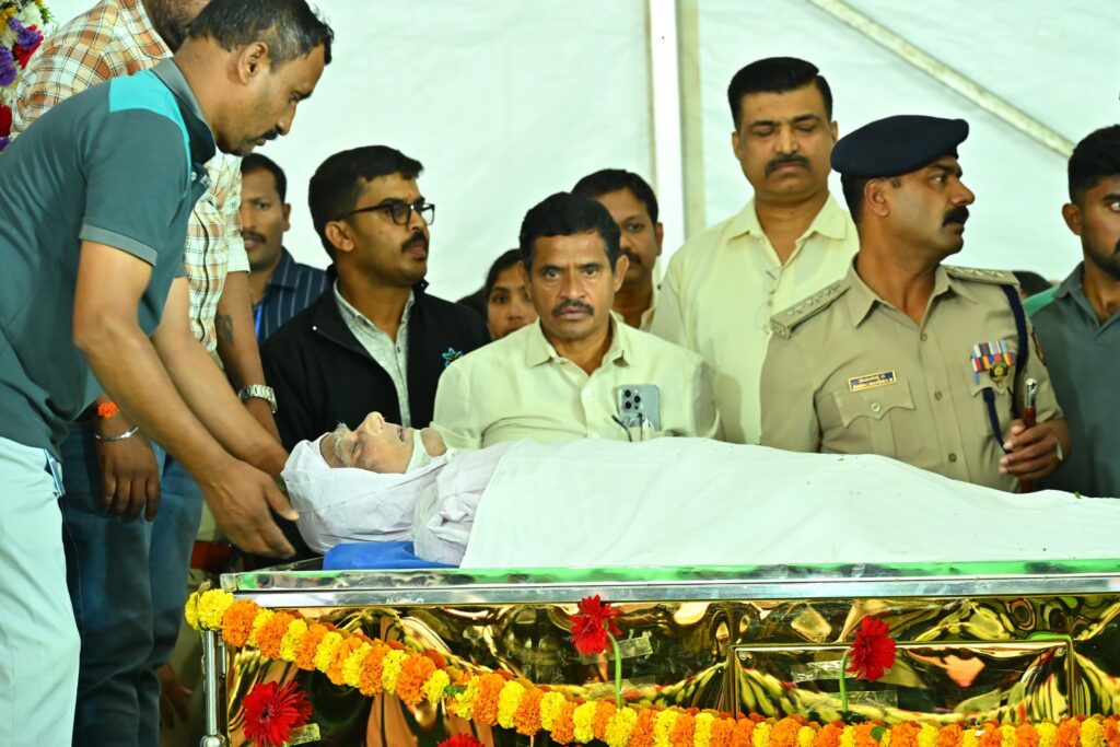 ಬೆಂಗಳೂರು, ಸೆ.25-ಕನ್ನಡ ಸಾರಸ್ವತ ಲೋಕದ ದಿಗ್ಗಜ, ಮೇರು ಸಾಹಿತಿ, ಕಾದಂಬರಿ ಕಾರ , ಸರಸ್ವತಿ ಸಮಾನ್‌ ಪ್ರಶಸ್ತಿ ಪುರಸ್ಕೃತ, ಪದಭೂಷಣ ಡಾ. ಎಸ್‌‍.ಎಲ್‌.ಭೈರಪ್ಪ ಅವರ ಪಾರ್ಥಿವ ಶರೀರದ ಅಂತಿಮ ದರ್ಶನ ಪಡೆದ ಅವರ ಅಪಾರ ಅಭಿಮಾನಿ ಬಳಗ, ಗಣ್ಯರು, ಸಾಹಿತಿಗಳು, ಕಲಾವಿದರು ಕಂಬನಿ ಮಿಡಿದರು.