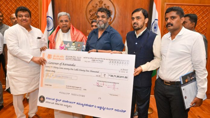 ಬೆಂಗಳೂರು, ನ. 7- ಕರ್ನಾಟಕ ರಾಜ್ಯ ಸರ್ಕಾರದ ಜಾಹೀರಾತು ಸಂಸ್ಥೆಯಾದ ಮೆ. ಕರ್ನಾಟಕ ಸ್ಟೇಟ್ ಮಾರ್ಕೆಂಟಿಗ್ ಕಮ್ಯೂನಿಕೇಷನ್ ಅಂಡ್ ಅಡ್ವರ್ಟೈಸಿಂಗ್ ಲಿಮಿಟೆಡ್ (ಕೆಎಸ್ಎಂಸಿಎ) ಕಂಪನಿಯು ವಿಶೇಷ ಲಾಭಾಂಶದ ಮೊತ್ತ ರೂ.34.13 ಕೋಟಿಗಳನ್ನು ಸರ್ಕಾರಕ್ಕೆ ನೀಡಿದೆ. ಕಂಪನಿಯ ಪರವಾಗಿ ಬೃಹತ್ ಮತ್ತು ಮಧ್ಯಮ ಕೈಗಾರಿಕೆ ಸಚಿವ ಎಂ.ಬಿ. ಪಾಟೀಲ್ ಮತ್ತು ಕೆಎಸ್ಎಂಸಿಎ ಸಂಸ್ಥೆಯ ಅಧ್ಯಕ್ಷರು ಹಾಗೂ ಕಾರವಾರ ವಿಧಾನಸಭಾ ಕ್ಷೇತ್ರದ ಶಾಸಕ ಸತೀಶ ಕೃಷ್ಣ ಸೈಲ್ ಅವರು ವಿಧಾನಸೌಧದಲ್ಲಿ ವಿಶೇಷ ಲಾಭಾಂಶದ ಚೆಕ್ ಅನ್ನು ಮುಖ್ಯಮಂತ್ರಿಸಿದ್ದರಾಮಯ್ಯರವರಿಗೆ ಹಸ್ತಾಂತರಿಸಿದರು.