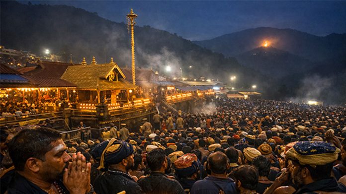 ಅಯ್ಯಪ್ಪ ಸ್ವಾಮಿಯ ಪವಿತ್ರ ಆಭರಣಗಳನ್ನು ಹೊತ್ತ ತಿರುವಾಭರಣಂ ಮೆರವಣಿಗೆ ಇಂದು ಸಂಜೆ 5.30 ರ ಹೊತ್ತಿಗೆ ಬಿಗಿ ಭದ್ರತೆಯಲ್ಲಿ ಸಾಂಪ್ರದಾಯಿಕ ಮಾರ್ಗವನ್ನು ತಲುಪಲಿದ್ದು, ಸಂಜೆ 6.20 ರ ಸುಮಾರಿಗೆ ದೇವಾಲಯ ಸಂಕೀರ್ಣಕ್ಕೆ ಆಗಮಿಸುವ ನಿರೀಕ್ಷೆಯಿದೆ ಎಂದು ದೇವಾಲಯದ ಮೂಲಗಳು ತಿಳಿಸಿವೆ.