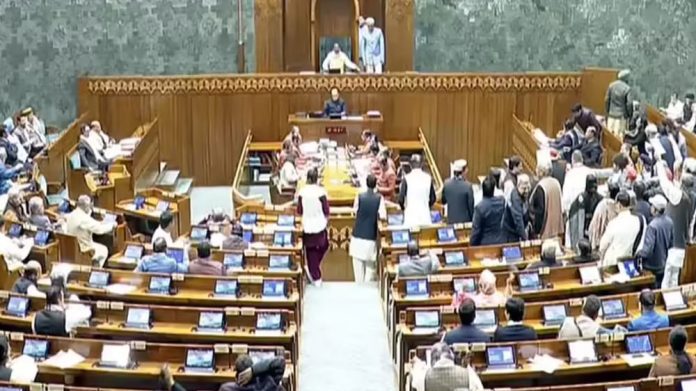 ಲೋಕಸಭೆಯಲ್ಲಿ ಪ್ರಶ್ನೋತ್ತರ ಕಲಾಪದ ನಂತರ ಭಾರತ-ಅಮೆರಿಕ ವ್ಯಾಪಾರ ಒಪ್ಪಂದ ಕುರಿತಂತೆ ಸರ್ಕಾರದ ವಿರುದ್ಧ ವ್ಯಾಪಕ ಟೀಕೆಗಳನ್ನು ನಡೆಸಿದ್ದ ವಿಪಕ್ಷ ಸದಸ್ಯರು ಸದನದ ಬಾವಿಗೆ ಇಳಿದು ಘೋಷಣೆಗಳನ್ನು ಕೂಗಿದರು.