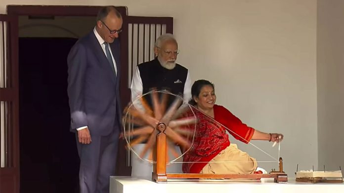 ಅಹಮದಾಬಾದ್, ಜ. 12- ಪ್ರಧಾನಿ ನರೇಂದ್ರ ಮೋದಿ ಅವರು ಇಂದು ಜರ್ಮನ್ ಚಾನ್ಸೆಲರ್ ಫೆಡ್ರಿಕ್ ಮೆರ್ಜ್ ಅವರೊಂದಿಗೆ ಅಹಮದಾಬಾದ್ನಲ್ಲಿರುವ ಸಬರಮತಿ ಆಶ್ರಮಕ್ಕೆ ಭೇಟಿ ರಾಷ್ಟ್ರಪಿತ ಮಹಾತ ಗಾಂಧಿ ಅವರ ಆಶೀರ್ವಾದ ಪಡೆದರು.