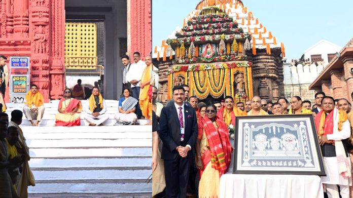 ಆಚರಣೆಗಳ ನಂತರ, ರಾಷ್ಟ್ರಪತಿಗಳು ಬೆಳಿಗ್ಗೆ 7.40 ಕ್ಕೆ 12 ನೇ ಶತಮಾನದ ದೇವಾಲಯದ ಸಿಂಘದ್ವಾರವನ್ನು ತಲುಪಿದರು. ಅವರನ್ನು ಪುರಿಯ ನಾಮಸೂಚಕ ರಾಜ ಗಜಪತಿ ಮಗರಾಜ ದಿಬ್ಯಾಸಿಂಘ ದೇಬ್ ಅವರು ಬರಮಾಡಿಕೊಂಡರು.