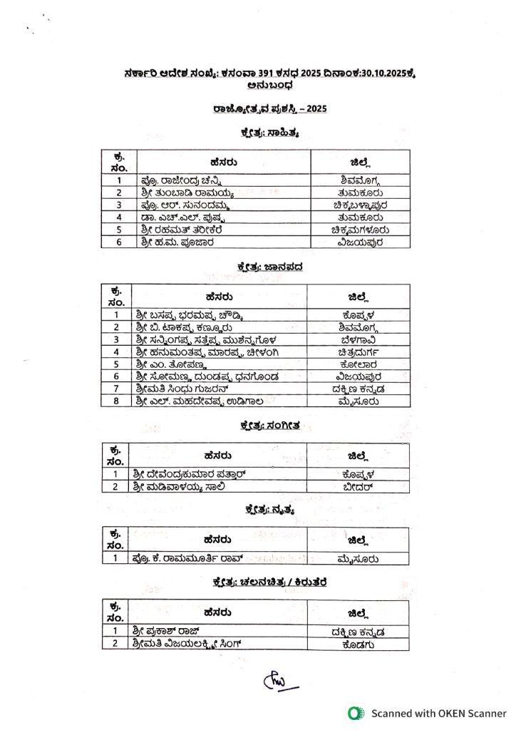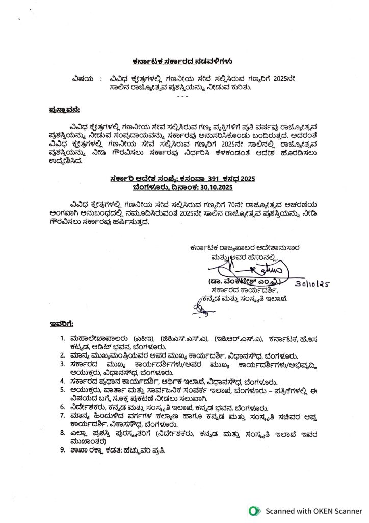 ಸಾಧಕರಿಗೆ ಪ್ರಸಕ್ತ 2025 ನೇ ಸಾಲಿನ ಪ್ರತಿಷ್ಠಿತ ಕನ್ನಡ ರಾಜ್ಯೋತ್ಸವ ಪ್ರಶಸ್ತಿ ಲಭಿಸಿದೆ.