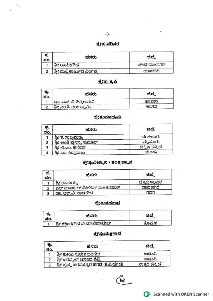 ಪ್ರಶಸ್ತಿ ನೀಡಿಕೆಯಲ್ಲಿ ಜಿಲ್ಲಾವಾರು, ಸಾಮಾಜಿಕ ಪರಿಪಾಲನೆಯಡಿ ಪ್ರಶಸ್ತಿಗೆ ಆಯ್ಕೆ ಮಾಡಲಾಗಿದೆ. ಆಯ್ಕೆ ಸಲಹಾ ಸಮಿತಿ ಸದಸ್ಯರು ಶಿಫಾರಸ್ಸು ಮಾಡಿದ್ದವರನ್ನು ಬಹುತೇಕ ಆಯ್ಕೆ ಮಾಡಲಾಗಿದ್ದು, ನಾಲ್ಕೈದು ಬಾರಿ ಸಭೆ ನಡೆಸಿದ ಸದಸ್ಯರು ಅರ್ಹರನ್ನು ಆಯ್ಕೆ ಮಾಡಲು ಸಹಕರಿಸಿದ್ದಕ್ಕೆ ಧನ್ಯವಾದಗಳನ್ನು ಈ ಮೂಲಕ ತಿಳಿಸುತ್ತೇನೆ ಎಂದರು.
