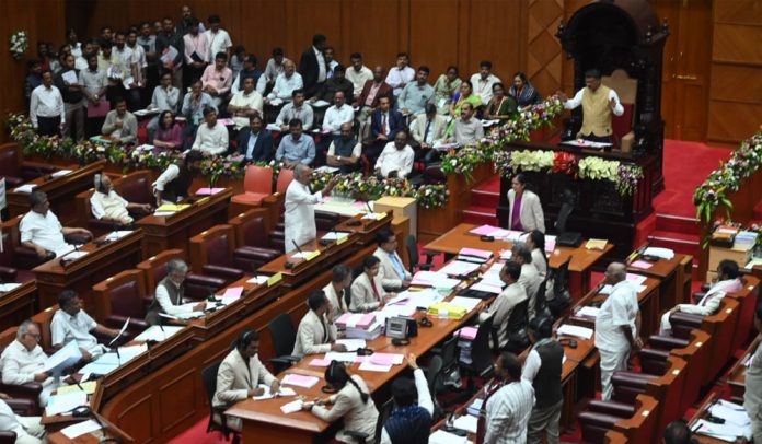 ಉತ್ತರಕರ್ನಾಟಕಕ್ಕೆ ಅಪಮಾನ ಮಾಡುತ್ತಿದೆ. ಉತ್ತರಕರ್ನಾಟಕದ ಪಾಲಿಗೆ ಸರಕಾರ ಸತ್ತುಹೋಗಿದೆ ಎಂದು ಸರಕಾರ ವಿರುದ್ಧ ಬಿಜೆಪಿ , ಜೆಡಿಎಸ್ ಸದಸ್ಯರು ಧಿಕ್ಕಾರ ಕೂಗಿದರು. ಸಚಿವರ ಅಲಭ್ಯತೆ ಕಾರಣದಿಂದಾಗಿ ಸದನವನ್ನು 10 ನಿಮಿಷ ಮುಂದೂಡಲಾಯಿತು.