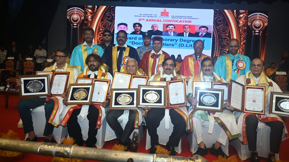 ಡಾ.ಮನಮೋಹನ್‌ ಸಿಂಗ್‌ ಬೆಂಗಳೂರು ನಗರ ವಿವಿಯು ಅಲ್ಪಾವಧಿಯಲ್ಲಿಯೇ ದೊಡ್ಡ ಸಾಧನೆ ಮಾಡಿದೆ ಎಂದು ಶ್ಲಾಘಿಸಿದರು.ನಗರದ ಜ್ಞಾನಜ್ಯೋತಿ ಸಭಾಂಗಣದಲ್ಲಿ ನಡೆದ ವಿವಿಯ 5ನೇ ವಾರ್ಷಿಕ ಘಟಿಕೋತ್ಸವದಲ್ಲಿ ವಿವಿಯ ಕುಲಾಧಿಪತಿಗಳು ಹಾಗೂ ರಾಜ್ಯಪಾಲ ಡಾ.ಥಾವರ್‌ ಚಂದ್‌ ಗೆಹ್ಲೋಟ್‌ ಅವರು ಗೌರವ ಡಾಕ್ಟರೇಟ್‌ ಪದವಿ ಪ್ರದಾನ ಮಾಡಿದರು.