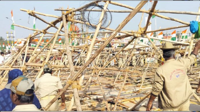 ಹುಬ್ಬಳ್ಳಿ,ಜ.24-ಮುಖ್ಯಮಂತ್ರಿಗಳು ಸೇರಿದಂತೆ ಹಲವು ಗಣ್ಯರು ಪಾಲ್ಗೊಳ್ಳಬೇಕಿದ್ದ ಮನೆ ಹಸ್ತಾಂತರ ಕಾರ್ಯಕ್ರಮ ಆರಂಭವಾಗುವ ಮುನ್ನವೇ ವೇದಿಕೆ ಮುಂಭಾಗ ಅಳವಡಿಸಿದ್ದ ಕಟೌಟ್ಗಳು ಏಕಾಏಕಿ ಕುಸಿದ ಪರಿಣಾಮ ನಾಲ್ವರು ಗಾಯಗೊಂಡಿದ್ದಾರೆ.