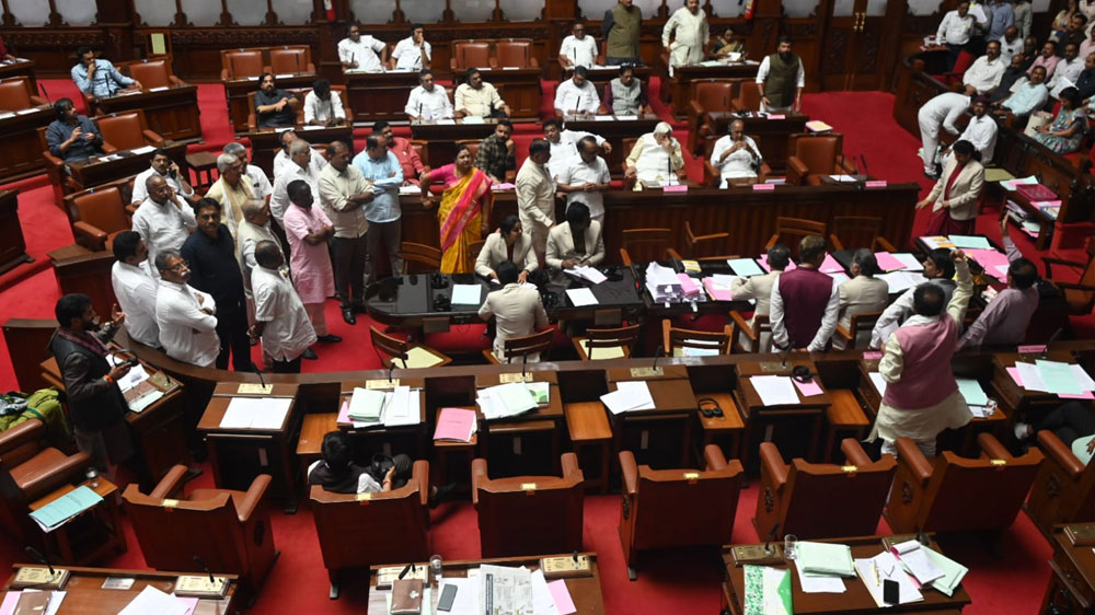 ಈ ವೇಳೆ ಕಾನೂನು ಮತ್ತು ಸಂಸದೀಯ ವ್ಯವಹಾರಗಳ ಸಚಿವರು ಮಾತುಕತೆ ನಡೆಸಿದರು. ಸದನ ಸಹಜ ಸ್ಥಿತಿಗೆ ಬರದಿದ್ದಾಗ ಸಭಾಪತಿ ಕಲಾಪವನ್ನು ಕೆಲ ಹೊತ್ತು ಮುಂದೂಡಿದರು.