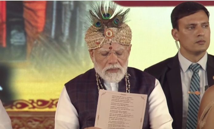 ಉಡುಪಿ,ನ.28- ಉಡುಪಿಯ ಶ್ರೀಕೃಷ್ಣ ಮಠದಲ್ಲಿ ಹಮಿಕೊಂಡಿರುವ ಲಕ್ಷಕಂಠ ಗೀತಾ ಪಠಣ ಕಾರ್ಯಕ್ರಮದಲ್ಲಿ ಭಾಗಿಯಾದ ಪ್ರಧಾನಮಂತ್ರಿ ನರೇಂದ್ರ ಮೋದಿ ಅವರಿಗೆ ಭಾರತ ಭಾಗ್ಯ ವಿಧಾತ ಬಿರುದು ನೀಡಿ ಸನಾನಿಸಲಾಯಿತು.