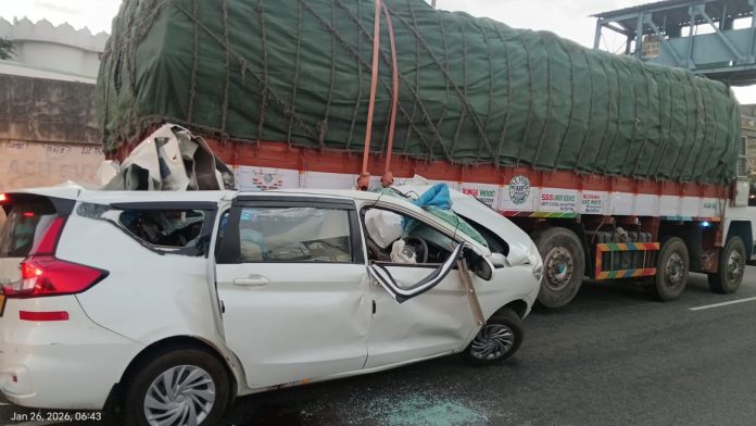 ಇಂದು ಬೆಳಿಗ್ಗೆ 6.30ರ ಸುಮಾರಿನಲ್ಲಿ ನೆಲಹಾಳ್ ಬಳಿಯ ರಾಷ್ಟ್ರೀಯ ಹೆದ್ದಾರಿ 48 ರಲ್ಲಿ ಬರುತ್ತಿದ್ದಾಗ ಅತೀ ವೇಗದಿಂದಾಗಿ ನಿಯಂತ್ರಣ ತಪ್ಪಿ ಕಾರು ಮುಂದೆ ಹೋಗುತ್ತಿದ್ದ ಲಾರಿಗೆ ಡಿಕ್ಕಿ ಹೊಡೆದಿದೆ.