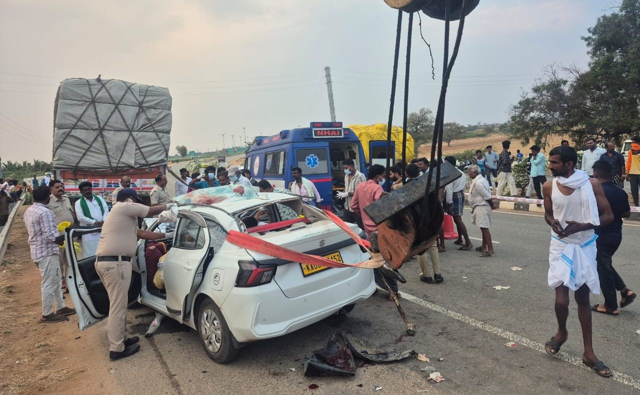 ನಿಂತಿದ್ದ ಲಾರಿಗೆ ಹಿಂಬದಿಂದ ಕಾರು ಡಿಕ್ಕಿ ಹೊಡೆದು ಸ್ಥಳದಲ್ಲೇ ಮೂವರ ಸಾವು